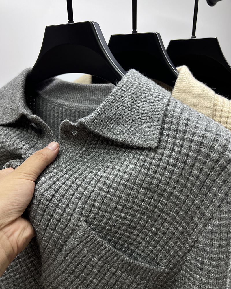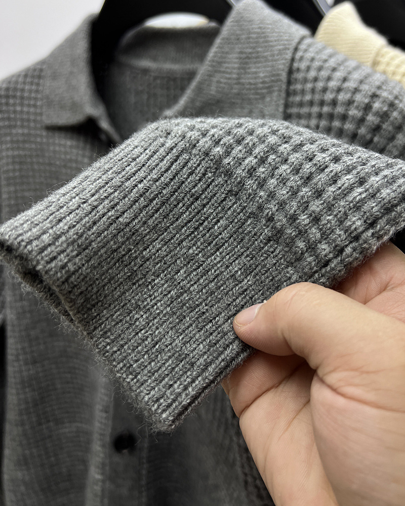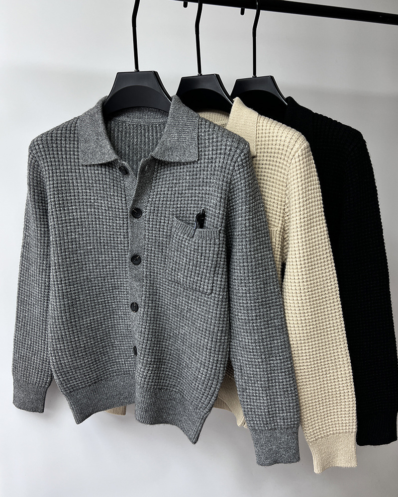 Casual Solid-Color Pocket Lapel Knit Sweater Coat