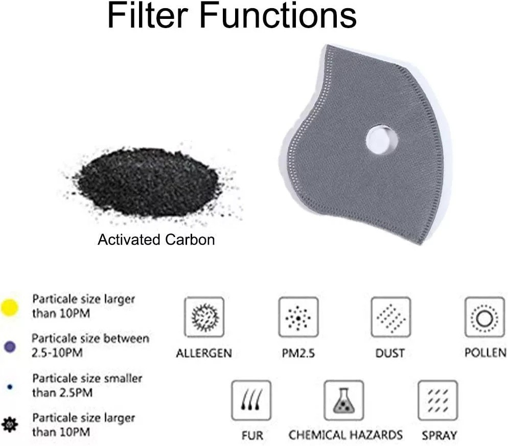 Sport Cycling Face Mask With Active Carbon Filter Breathing Valves Washable