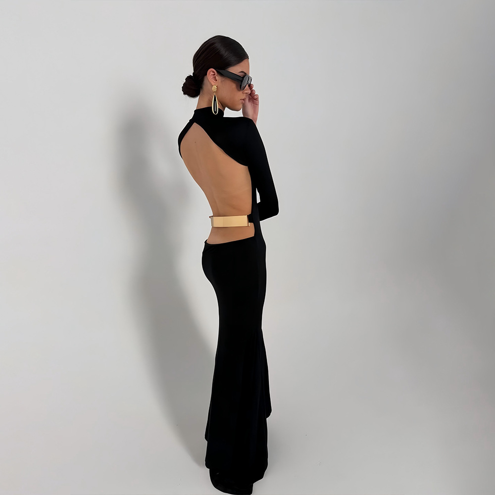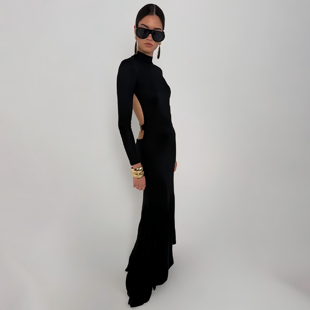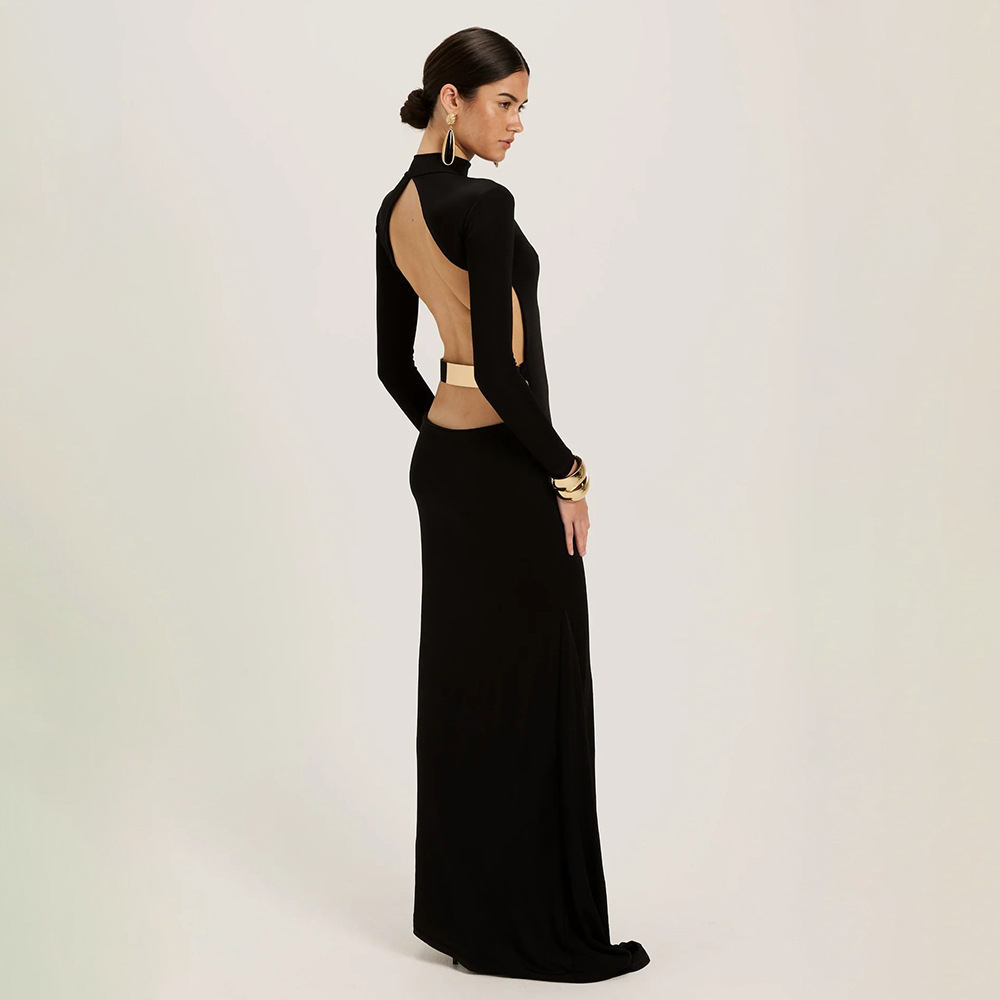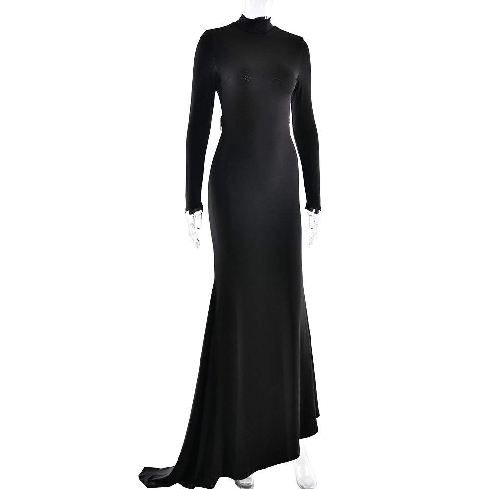 Winter Fashion Chic And Sexy Dress With A High Neck And Open Back
