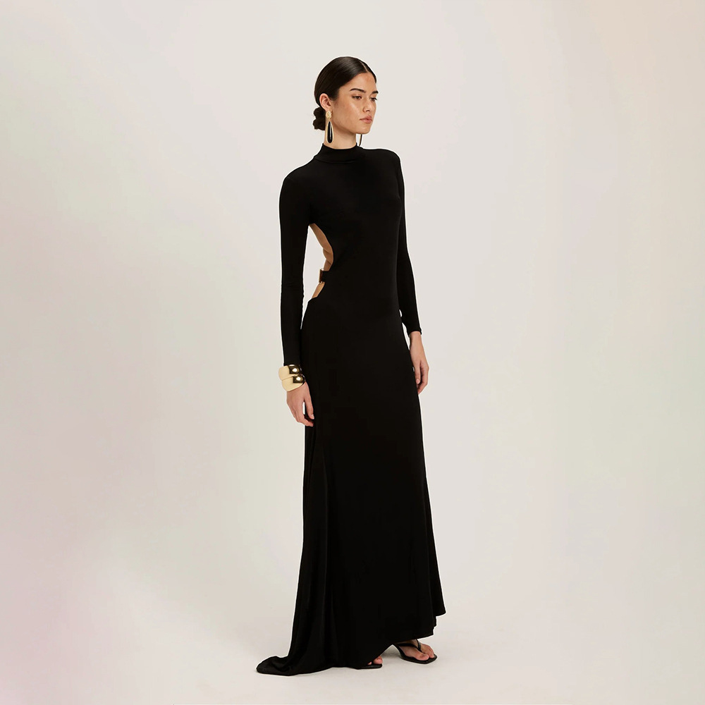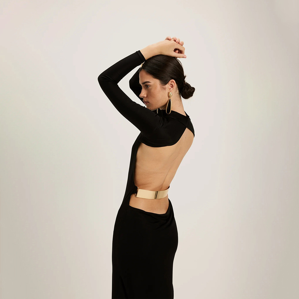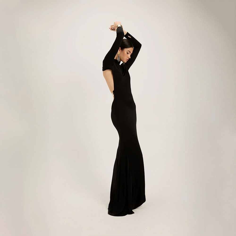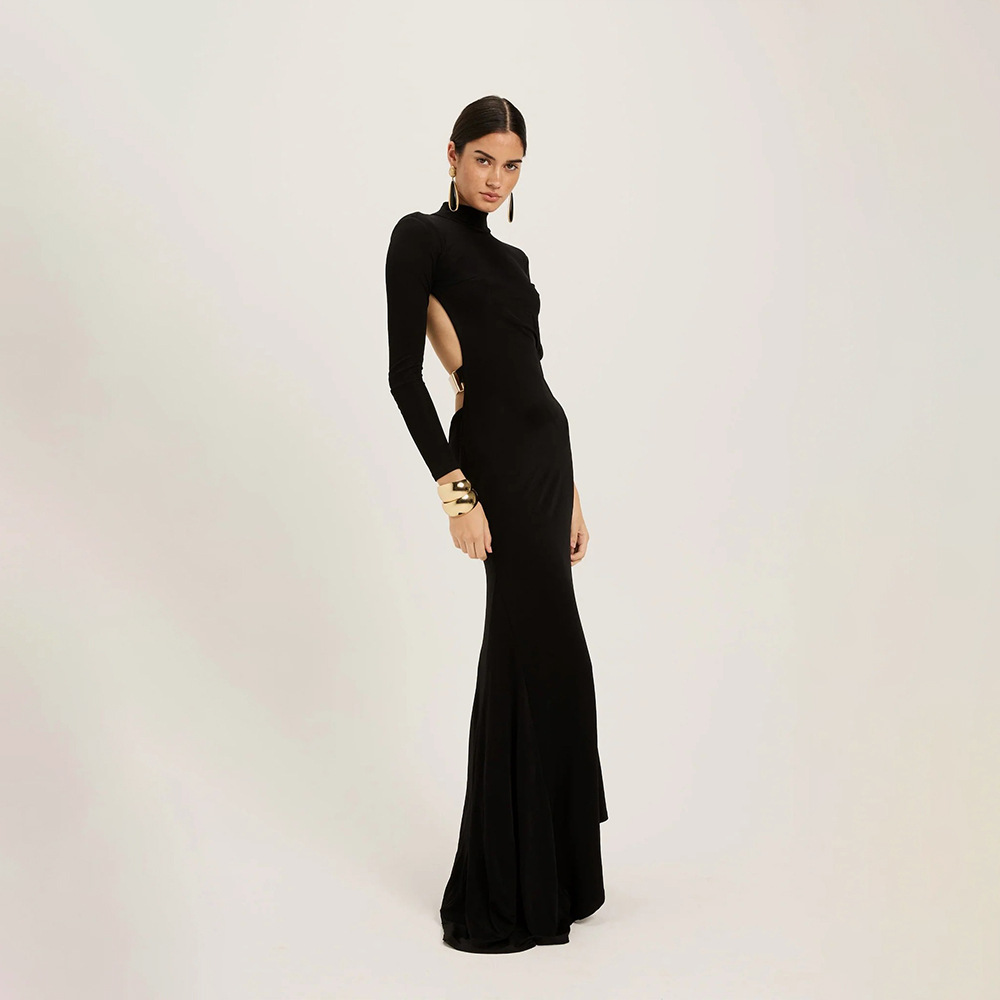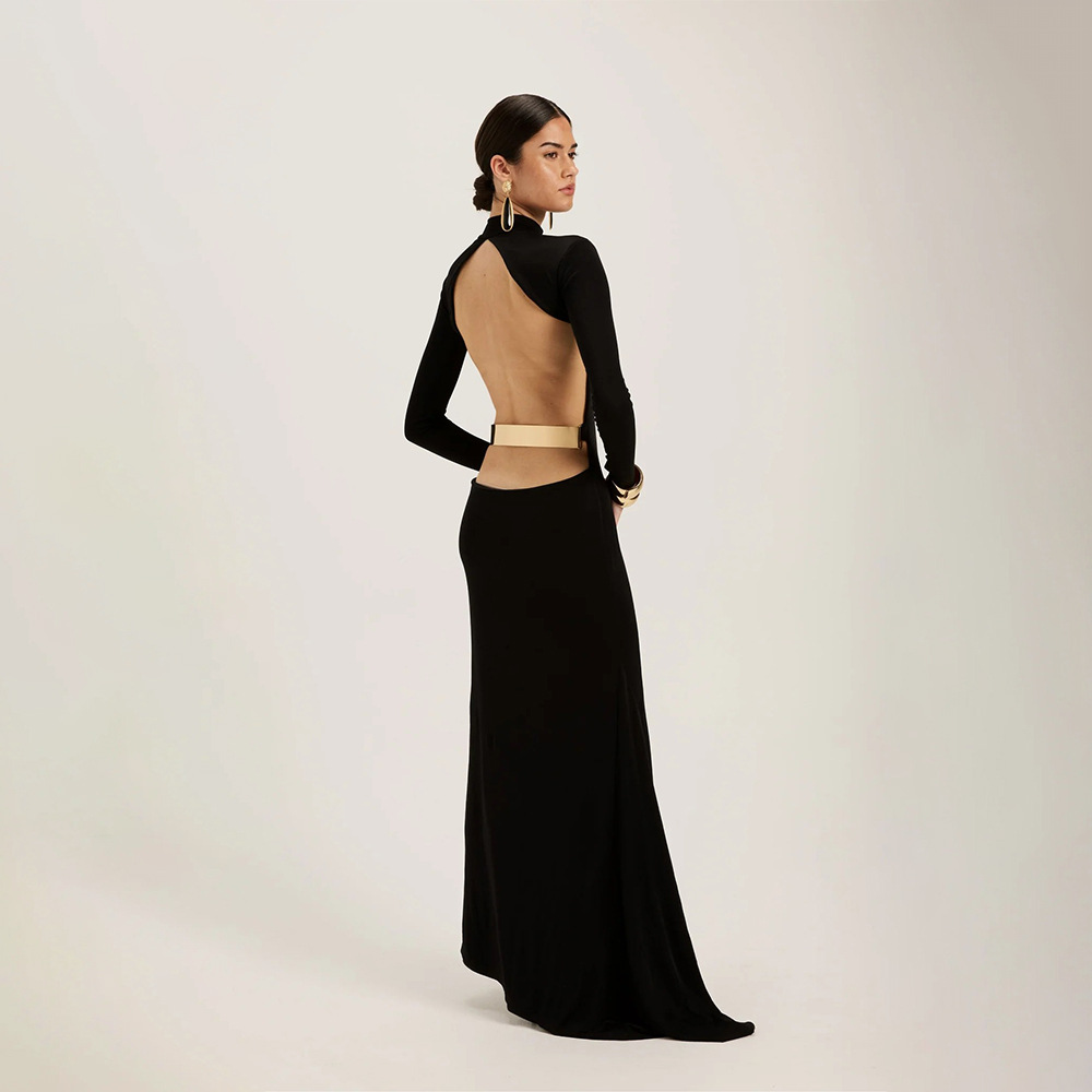 Winter Fashion Chic And Sexy Dress With A High Neck And Open Back