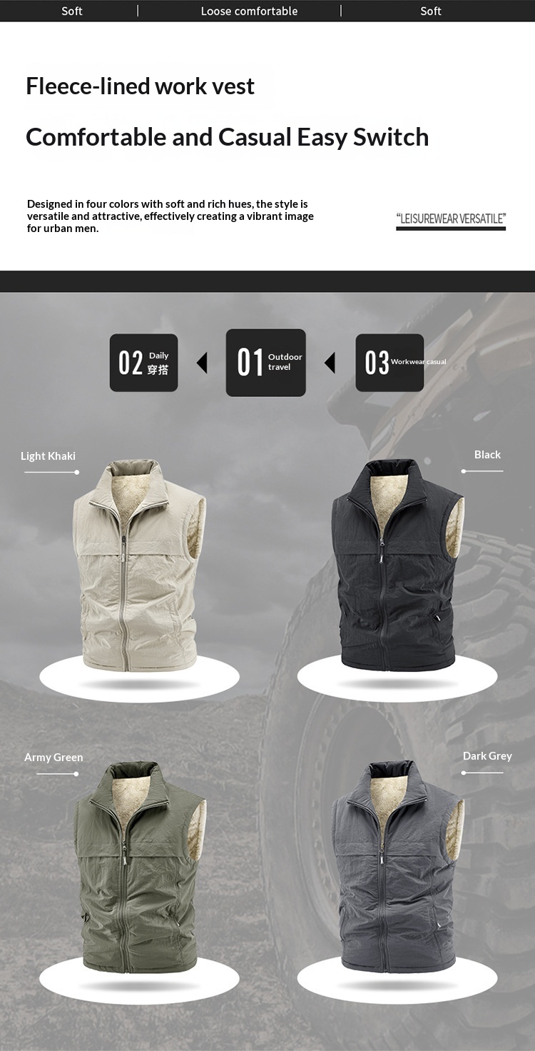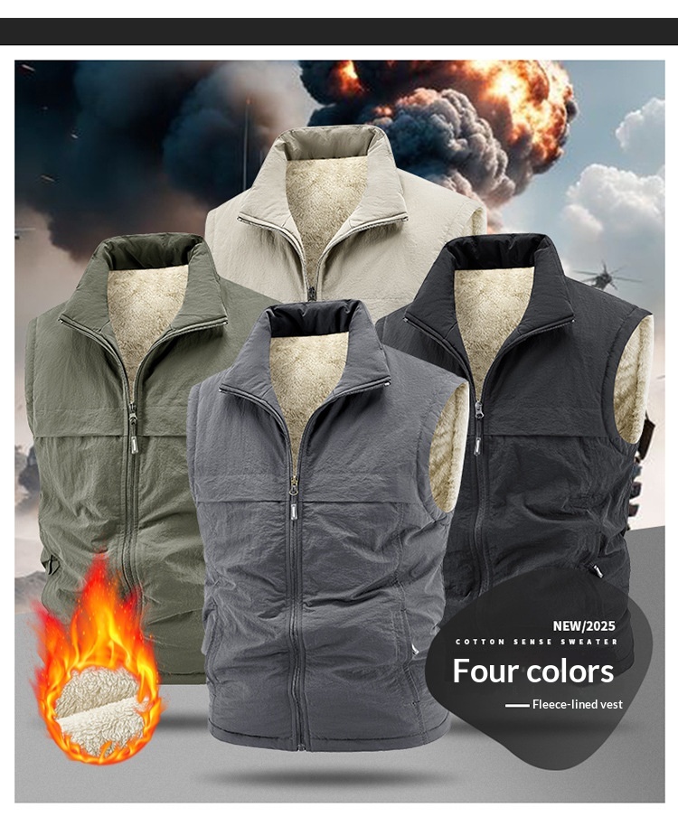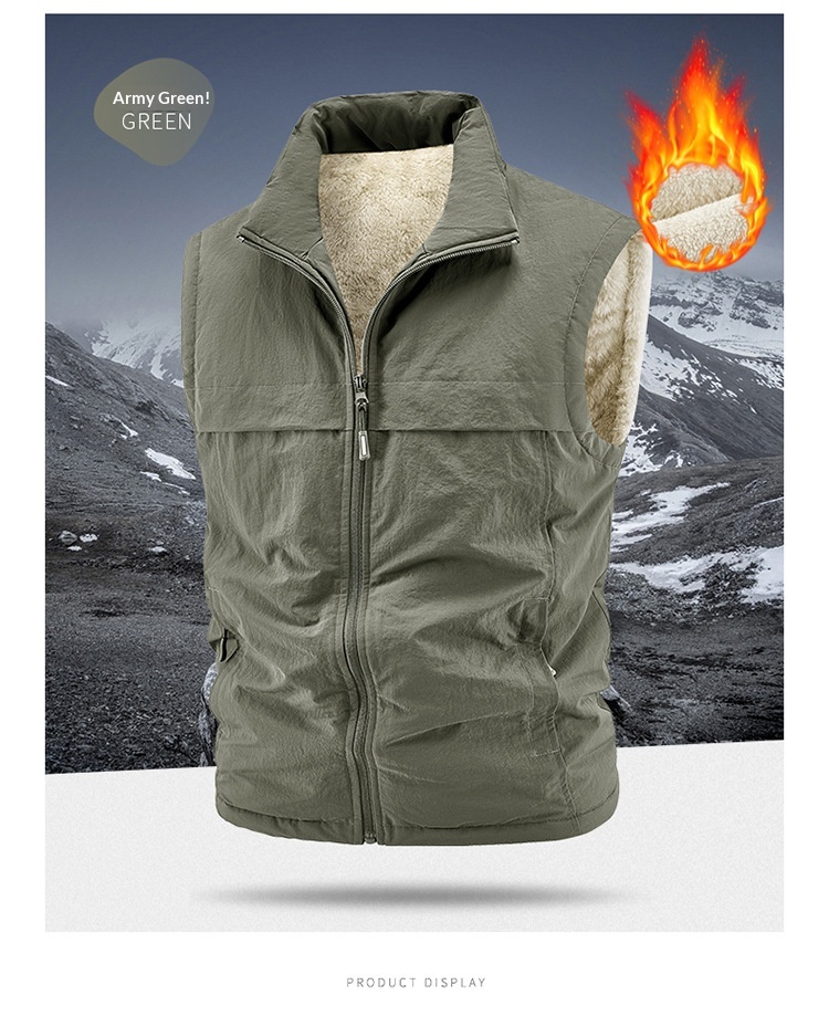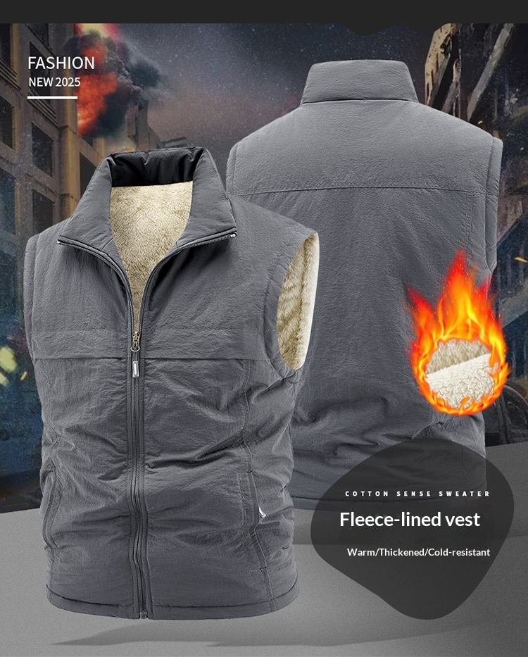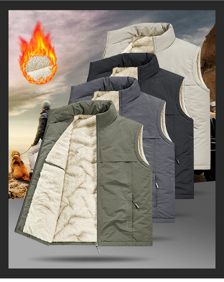 Winter Fleece-Lined, Thickened, Warm Mens Reversible Fleece Vest